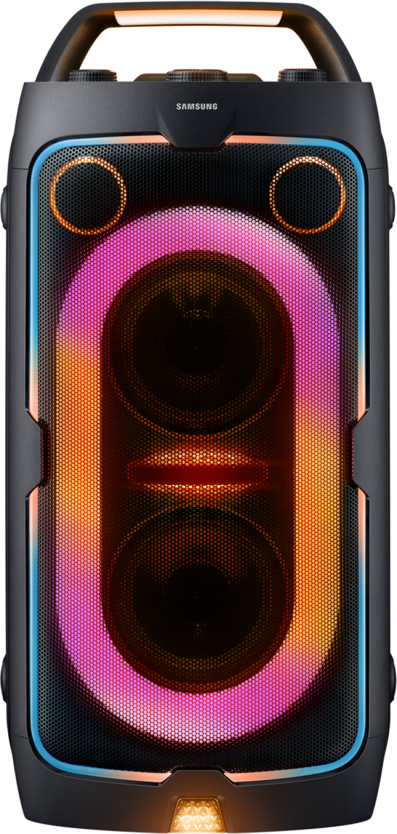 Погрузитесь в мощный и качественный звук в новом элегантном исполнении. Два низкочастотных динамика и три режима баса создают глубокое насыщенное звучание, которое подойдёт под любое настроение и обстановку — будь то громкая вечеринка в стиле диско или спокойный отдых. А два твитера с волноводами создают широкую звуковую сцену в высокочастотном спектре звучания, чтобы каждая нота звучала четко и ясно.